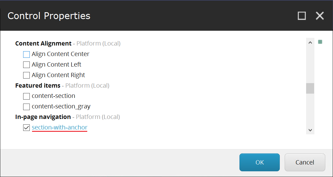 Note 2: just to remind, that rendering view, CSS class name for the component and other settings can be adjusted later at the Experience Accelerator section of rendering item: