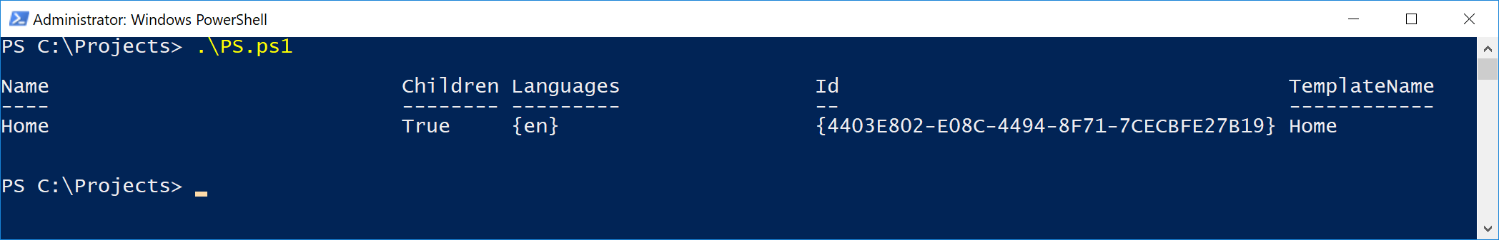 And voila! Although visually it is not as impressive, what actually happens on this screenshot is getting a simple query sent to Sitecore instance, executed remotely with the results returned back to Windows PowerShell, all transparently for the caller.