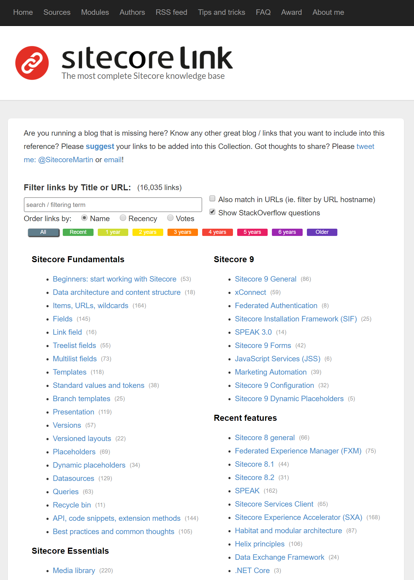 It is 2.5 years already since I launched Sitecore.Link project and it made a great input to the community in terms of accumulating and finding technical information. It served well as a starting point for those willing quickly to obtain all available knowledge about some specific aspects of Sitecore as all the links are split into 150+ categories from 15+ top-level areas (ie. SXA, Helix, Security, Media etc.)