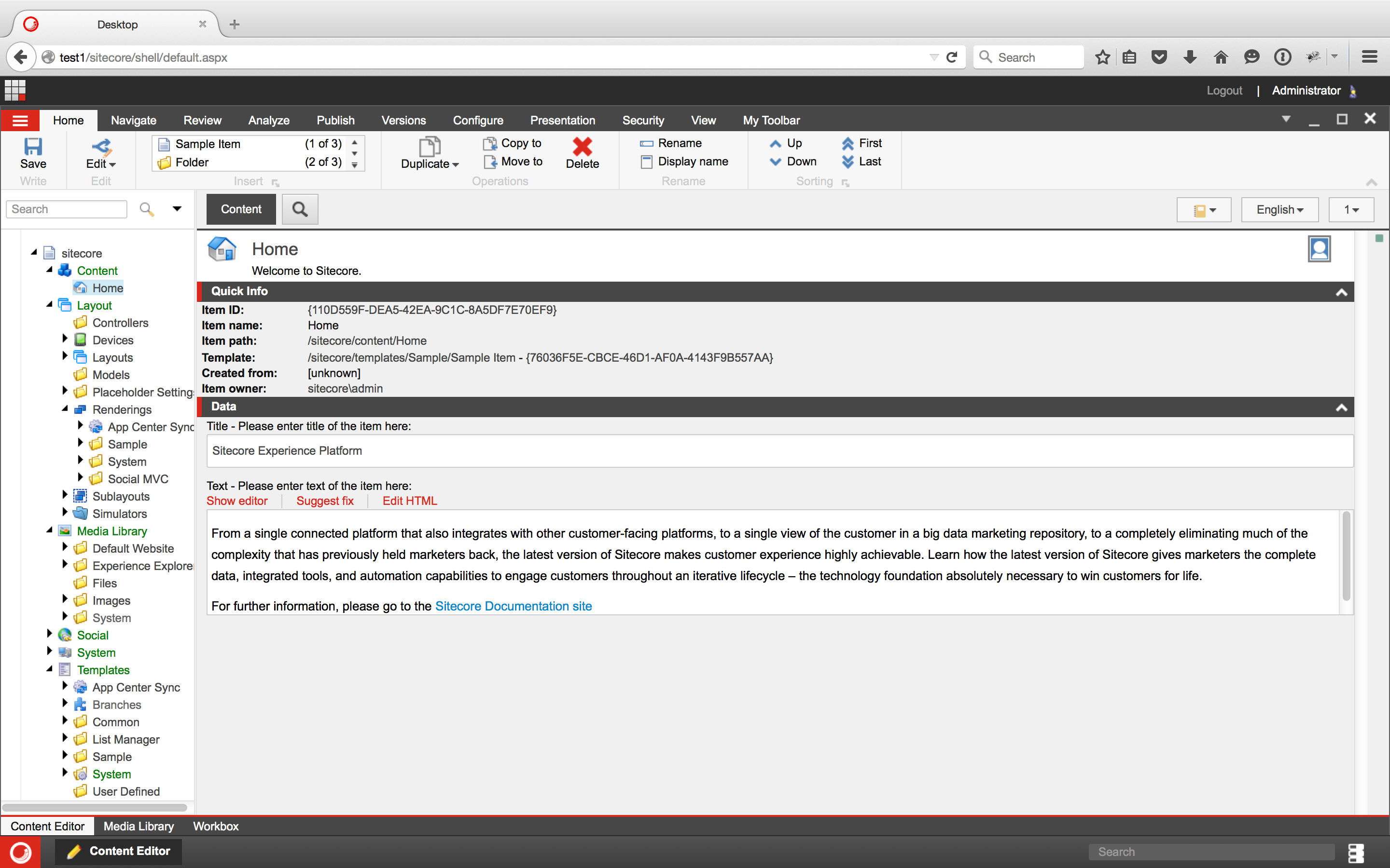 To start with, compare 2 images below. First one shows how Sitecore 8 looks originally, straight after the installation: