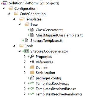 Notes: you may have Sitecore.CodeGenerator as a part of your solution, or unload from it - code generation still would work, just please make sure template files are referencing the right paths. Samples provided above are configured as at the image above.
