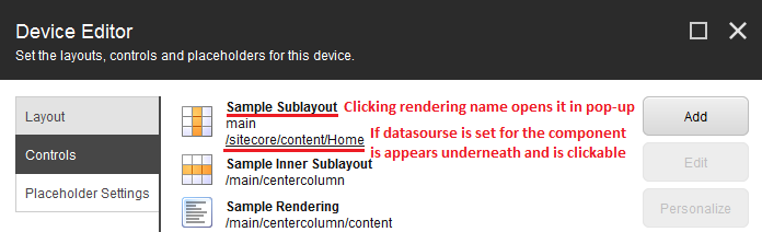 Additionally, rendering / sublayout name became also clickable with the same item preview popup effect.