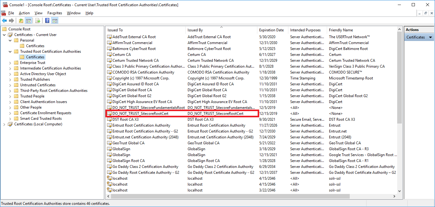 In my case, I had several certificates named DO_NOT_TRUST_SitecoreRootCert installed under Certificates - Current User - Trusted Root Certification Auhorities- Certificates, deleting them helped progress.