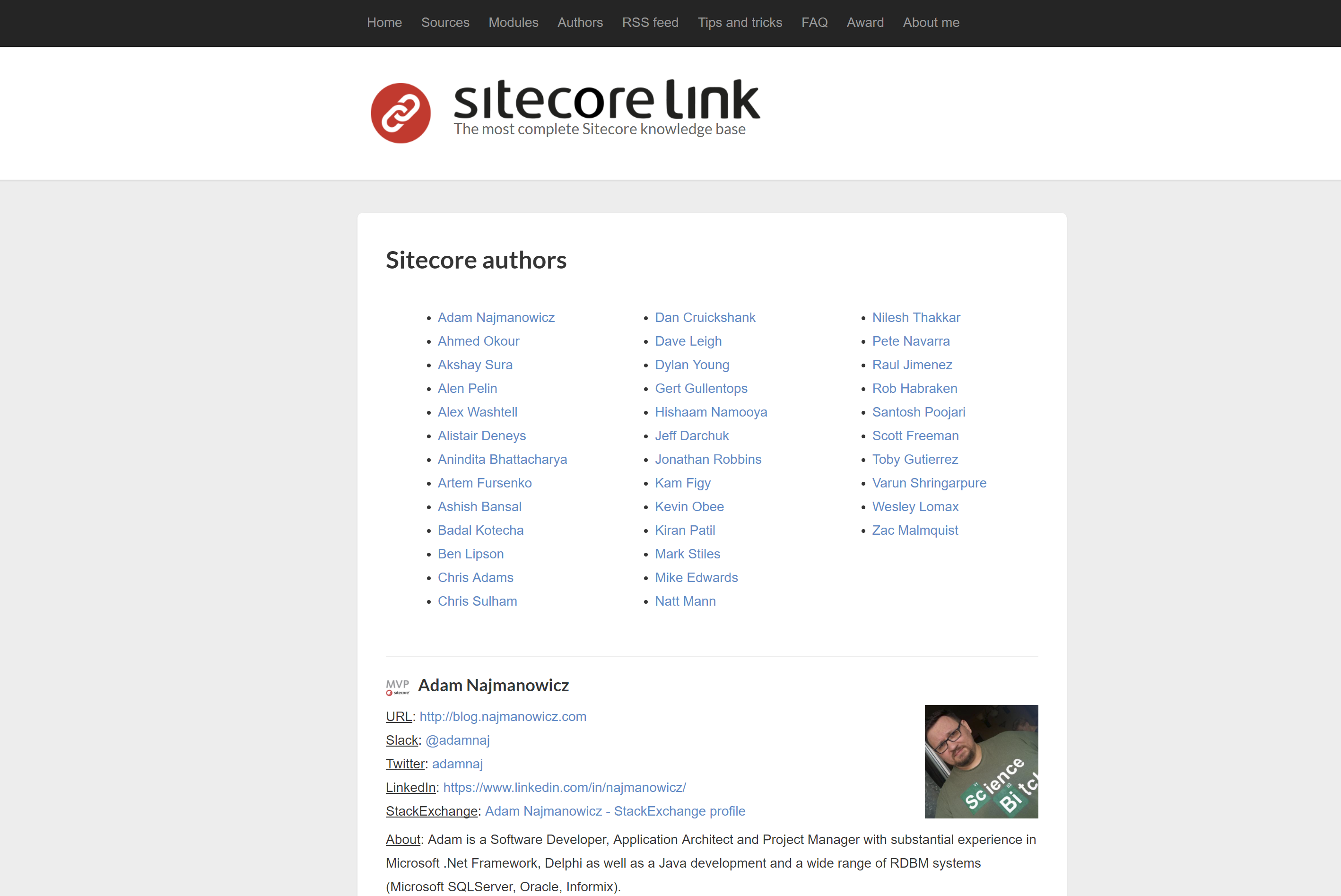 Sitecore Link project gained a list of additional Sitecore modules and implementations as well as their authors. With time, I tend to make it something more useful than Marketplace, so withing first quarter of 2018 will be populating it with the data and add features.