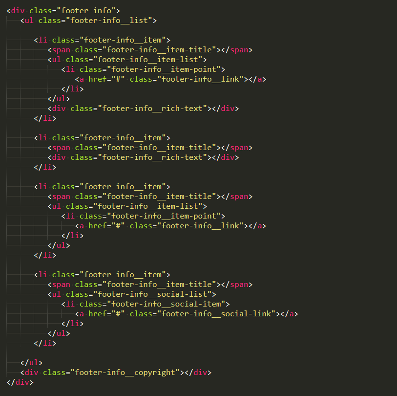 Lastly, footer-info__copyright field renders copyright lines at the very bottom.