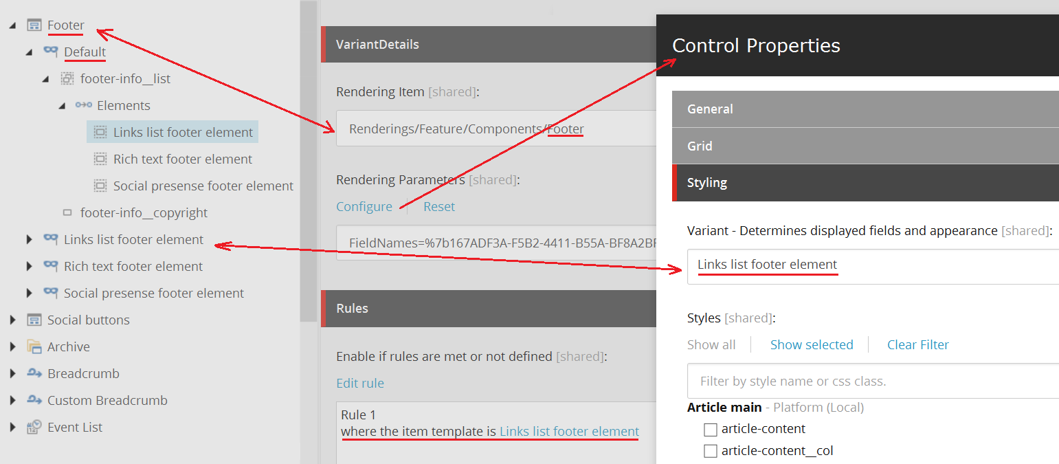 7. Rendering variants. In the previous steps, we have defined rendering, templates, folders and actual data. Now it is time to make it all together work to produce the output by creating rendering variants. This is the most tricky part of the current walkthrough