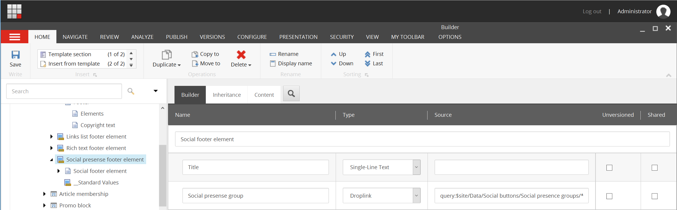 Next two items point to reusable Rich Text items under /Data folder. And the last one is a reference to a Social Presence I have implemented previously.