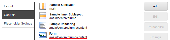 Image above displays webform, because we use default layout that comes with webforms aspx page. For MVC there is rendering called Form MVC. With next step below (as clicking Edit button) you need to specify which exact form should be served by this sublayout (or rendering for MVC):